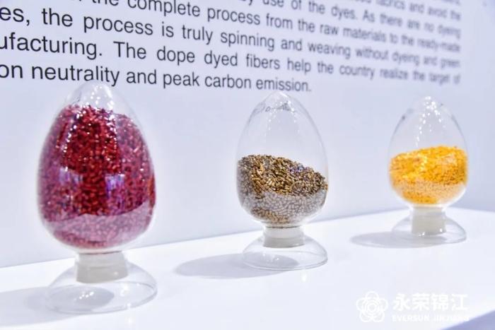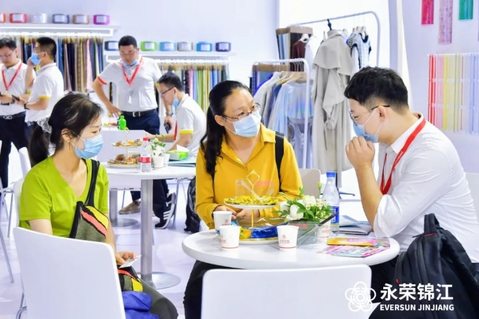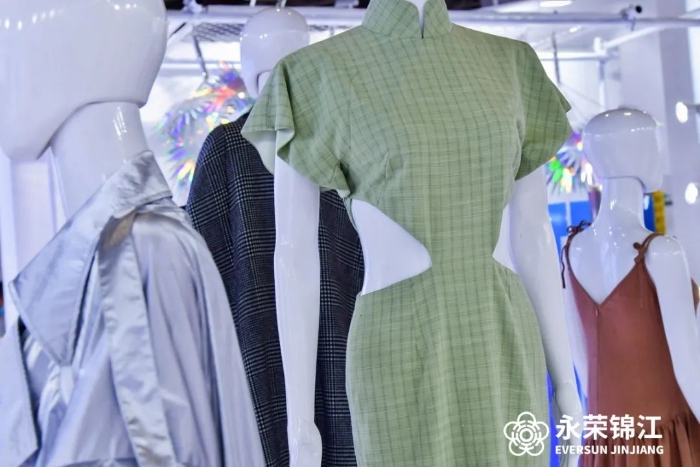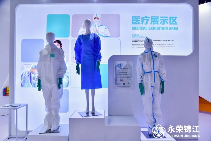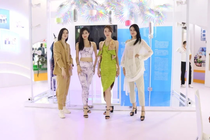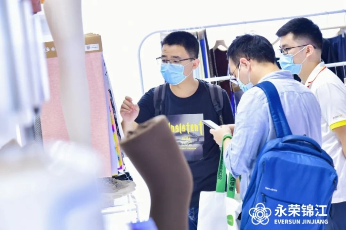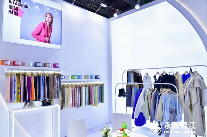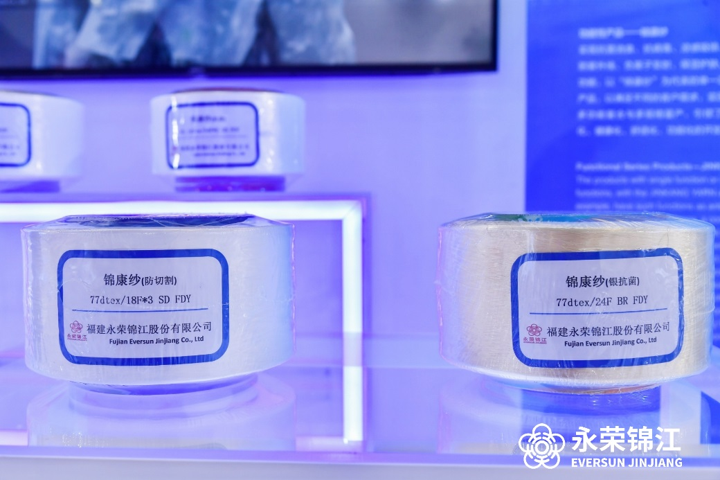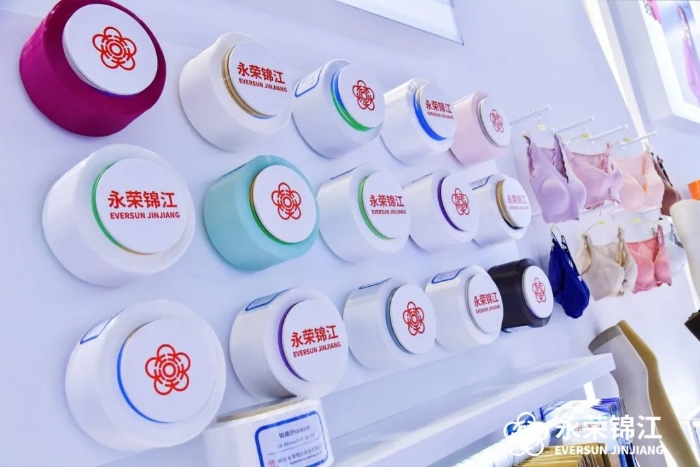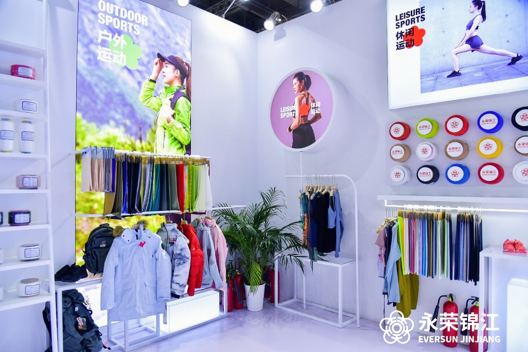 本次永荣锦江与中国纺织信息中心合作,以“Future Nylon”为主题,集合从纱线、面料到服装的全产业链优质锦纶产品,将展位空间精心设计为功能及色纱产品、潮流时尚、户外运动、休闲运动、家居内衣以及医疗产品六大部分,浓缩呈现出企业在锦纶纤维开发与应用领域的最新成果,再度展示了永荣锦江在科技创新、绿色发展方面的不凡实力。本届展会上,永荣锦江带来了三大主推功能性产品。据展位负责人介绍,以“锦康纱”为代表的单一功能或复合功能产品,具有抗菌消臭、抗病毒、凉感吸排、远红外蓄热、防紫外线、负离子发射、保湿护肤、抗起毛起球等功能,可以满足不同的客户需求,实现了锦纶纤维的多功能复合与多规格量产。而“锦逸纱”主打产品差异化,包括超细DPF纤维、超粗旦纤维、双色纤维、阳离子纤维、仿毛纤维、仿棉纤维等,在保持锦纶6独有特征的同时,还造就了织物轻柔、光滑细腻、风格别致的特性,体现了科技与自然融合的内涵。“锦生纱”是锦纶行业实现节能减排与绿色低碳重点发展的产品。其中再生纤维颠覆了传统纤维原料来源,以废弃资源制造出与原生纤维相差无几的新型纤维,实现了绿色、循环与高利用率的统一;原液着色锦纶6纤维通过添加色母粒的方式生产,从原料到成衣,整个过程不存在“染”的环节,是真正意义的无染纺织。