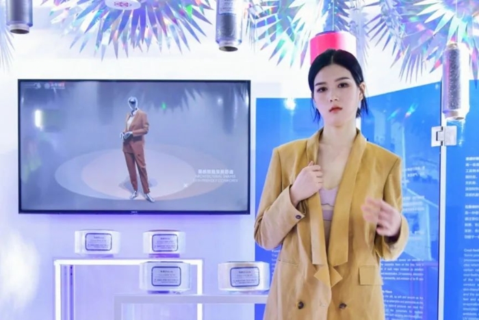 2021年,永荣锦江首次与中国国际面料设计大赛携手,增设了“锦纶产品开发应用奖”三个单项大奖,从纤维源端推动行业面料产品开发创新水平的提升。双方合作采用六款优秀获奖面料,在颁奖典礼上共同呈现了一场华丽的Digital Nylon数字时尚发布秀。采用超高精度3D数字面料模拟技术制作的虚拟服装展示视频在此展位进行了循环播放。观众不仅可以通过电影级别的仿真效果感受面料的多重色彩、细腻层次与悬垂质感,还可以通过不同终端应用领域的面料与成衣的搭配陈列,近距离体验锦纶产品的时尚设计与优异性能。虚拟与现实的交互,带来观展的全新体验。