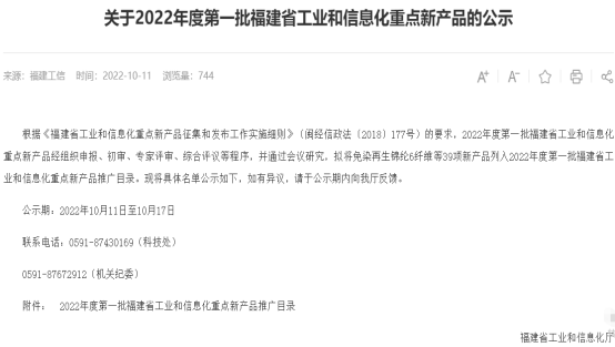 近日,省工信厅门户网站发布,根据《福建省工业和信息化重点新产品征集和发布工作实施细则》(闽经信政法〔2018〕177号)的要求,2022年度第一批福建省工业和信息化重点新产品经组织申报、初审、专家评审、综合评议等程序,并通过会议研究,拟将免染再生锦纶6纤维等39项新产品列入2022年度第一批福建省工业和信息化重点新产品推广目录。永荣股份申报的新品——免染再生锦纶6纤维入选。