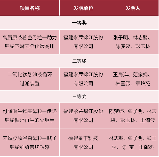 福建省百万职工“五小”创新大赛是福建省总工会在全省企事业单位中广泛开展以“小革新、小发明、小创造、小设计、小建议”为主要内容的“五小”竞赛活动,旨在更好地发挥广大职工在推进企业持续发展进程中的主力军作用,进一步激发广大职工的创新意识,挖掘培养技术技能人才。近年来,永荣股份大力推行创新创效活动,加大创新投入,激励职工参与企业内外技能提升和科技创新,围绕提高企业经济效益、降本增收、节能减排等方面开展创新创效活动,产生了一大批具有新颖性、实用性、先进性的创新项目,已经产生明显经济、社会和环保效益。获“五小”创新大赛一等奖“高质原液着色母粒——助力锦纶下游无染化碳减排”项目,为我司”锦生纱“系列产品带来可观的销量和经济效益的同时,节约能耗、水耗,降低了COD和二氧化碳的排放,同时减少了化学品的使用。产品已荣获国际环保纺织协会(OEKO-TEX)颁发的2022年STANDARD100认证证书,并取得该认证中所有评估?樽酆献罡咂兰叮á窦/婴幼儿级),且该项目获1份国家发明专利、1项国家实用新型专利以及1项欧洲卢森堡发明专利授权。获大赛二等奖项目及三等奖的两个项目都有对应的国家发明或实用新型专利的支撑,为公司节约资金、增加经济效益及为公司开辟市场提供了有力的技术保障。