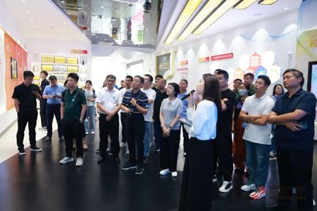 活动当日,与会嘉宾走访参观了永荣股份的数字展厅与智能生产车间,付重先对自动化生产流程、设备优势、生产规模及效益提升进行了介绍。企业代表们详细了解了企业的发展历程、企业文化、核心产品与未来方向,深刻感受到永荣股份以科技创新和品牌建设带动产业高质量发展的热情与活力。