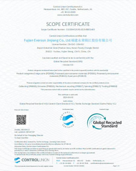 秉承着“绿色生产、和谐发展”的经营理念,永荣股份在绿色产品研发上不断攻坚克难,一路创新推进。截至目前,企业已荣获多项绿色研发、节能减排领域的重要荣誉,通过多项国际认可的环境足迹绿色认证。消费前再生纤维与消费后再生纤维 E-SUNLON?均取得全球回收利用规范 GRS认证(GLOBAL Recycled standard);永荣股份黑色母粒、再生切片、原液着色纤维、再生纤维已通过“从摇篮到坟墓”生命周期评价(Life Cycle Assessment即LCA认证);永荣股份再生切片机再生纤维通过EPD环境产品声明认证......从原材料获取、生产、运输、消费到最终报废处理的全生命周期,永荣股份不断攻克技术壁垒,突破专业领域“卡脖子”难题,为绿色产品生态设计提供了强大技术支持及科学使用保障。