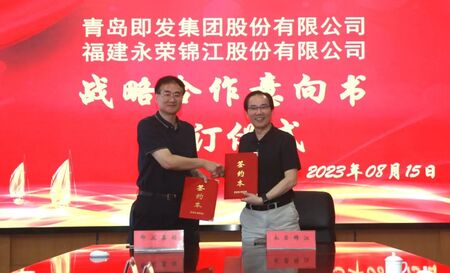 为贯彻落实公司“应变于新,提质增效”战略,践行“太原战役”的精神。8月15日上午,永荣股份汪建根总经理带领,生产副总宁佐龙,采购总监张秀媚,销售总监杨锐,研发总监金志学,华北大区经理苏振国走访国家针织龙头企业青岛即发集团,并签署战略合作意向书。即发集团董事长杨为东,副总经理万刚,华和事业部副本部长江卫强,技术中心刘典波部长,及各分公司技术人员共同出席。