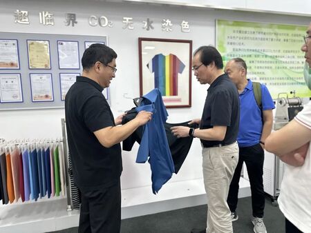 签约前,万刚副总带队参观了即发集团的展览馆,了解即发集团发展史以及甲壳素纤维新材料,超临界二氧化碳无水染色等重点特色项目,并作现场交流。