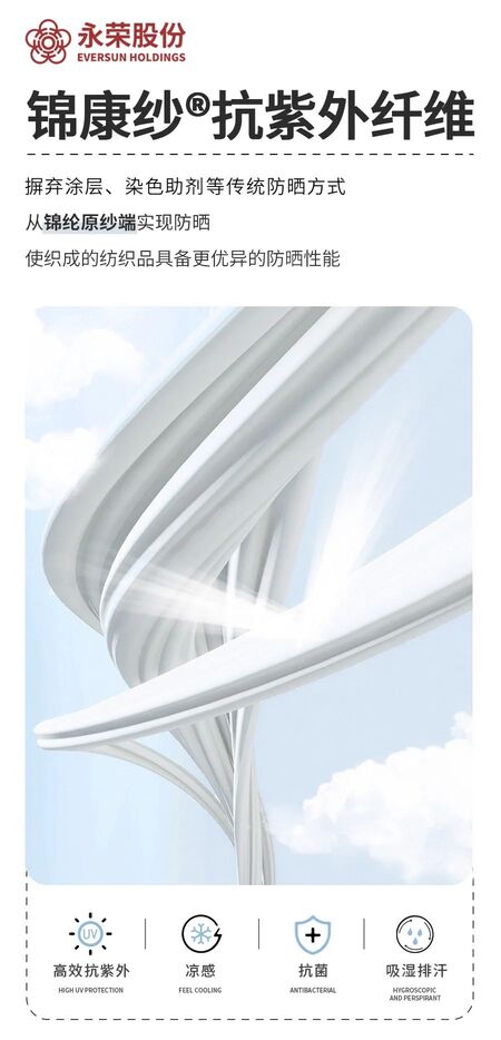 市面上的防晒衣通常采用的面料是锦纶。作为一种合成纤维,锦纶具有较高的强度和耐磨损性。此外,锦纶还具有较好的弹性和柔软性,使得防晒衣穿着舒适,并且可以适应多种运动场景,为了在锦纶面料的优势上持续发挥其防晒功能,福建永荣锦江股份有限公司在锦纶生产过程中加入纳米无机粉体材料使其具备更强的抗紫外功能。因此,本文以福建永荣锦江股份有限公司旗下具有行业代表性的抗紫外锦纶6纤维为例,阐述抗紫外锦纶6纤维如何凭借独特肤感及抗紫外线强等优点成为了各类防晒品牌共同的心头好。