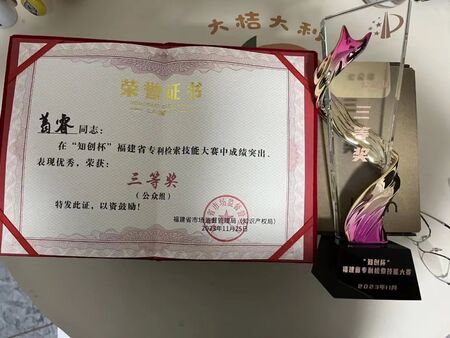 这次比赛旨在提升福建省知识产权信息公共服务能力水平,促进知识产权信息分析利用的规范化和标准化,打造知识产权公共服务品牌,培养知识产权人才队伍。通过初赛、复赛、决赛的激烈角逐,葛睿凭借过硬的技能和稳定的发挥,荣获公众组三等奖,这充分展示了她在知识产权领域的实力和水平。