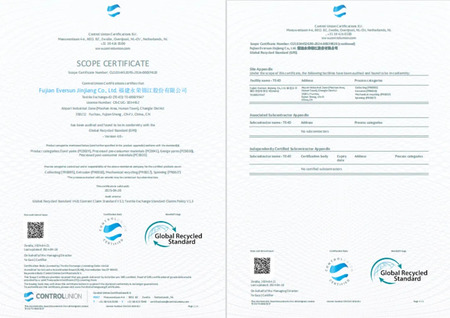 喜报!永荣股份于4月中旬顺利通过世优认证(上海)有限公司的全球回收标准(以下简称“GRS”)认证,公司消费前再生及消费后再生纤维产品均获得GRS认证证书。