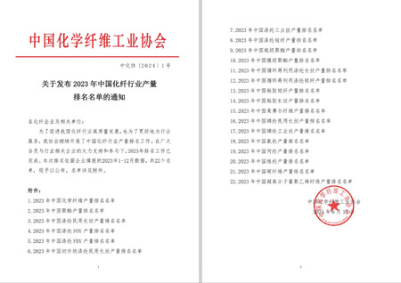 本次排名分为化学纤维产量综合排名,以及包括锦纶民用长丝在内的21个细分产品产量排名,排名根据2023年1-12月企业填报的数据统计。
