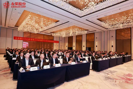 2024年12月30日,在如诗如画的江南水乡——乌镇,永荣股份隆重召开了2024年营销工作总结暨2025年经营指标签订大会。永荣股份总经理汪建根、副总经理吴梦、常务副总张方永、市场副总陈信富、资深销售专家黄永春、销售总监杨锐等营销高层领导与全体营销铁军,携手生产、研发、人资行政各职能部门负责人齐聚一堂,共同出席本次意义非凡的会议,一同回顾过去一年的营销征程,展望新一年的发展蓝图,为公司在 2025 年及更远的未来迈向新高度奠定坚实基础。