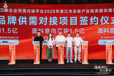 在泳装产业链资源供需对接会上,永荣股份常务副总经理张方永与晋江市亿聚服装科技有限公司代表签署金额达1.5亿元的战略采购协议。此次合作聚焦高端泳装面料的研发与供应,旨在通过资源整合推动产品创新与产能优化,进一步巩固晋江泳装产业的全球竞争力。
