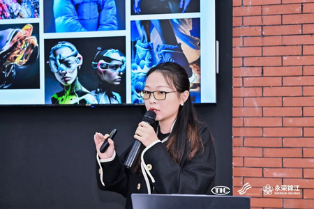 在《永荣股份差异化锦纶产品及未来趋势》分享中,福建永荣锦江股份有限公司技术研发资深工程师金志学介绍了可个性化定制功能的锦康纱?、实现科技与自然融合的锦逸纱?、绿色低碳环保的锦生纱?的永荣股份“三根纱”高端差异化产品矩阵,他表示,锦纶在防晒衣、冲锋衣、羽绒服、户外装备上均能实现高效应用,未来锦纶可在消费者的基础需求之上,考虑防护、社交、自我等方面的需求,提升产品的附加价值。