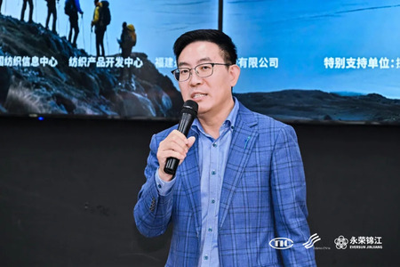 围绕《功能性锦纶赋能冲锋衣创新开发》的主题,联盛(福建)纺织科技发展有限公司研发总监姬长全结合冲锋衣软硬壳的面料需求表示,冲锋衣的核心要素包括性能防护、耐用性、场景适配、生理舒适等,而锦纶断裂强力高、耐磨性佳、色牢度优异,其中永荣股份锦康纱?能够与冲锋衣市场需求形成强连接。他表示,未来冲锋衣领域可以向防沾污易清洗材料、极端防护材料、智能舒适新材料等方向进行前瞻性拓展。