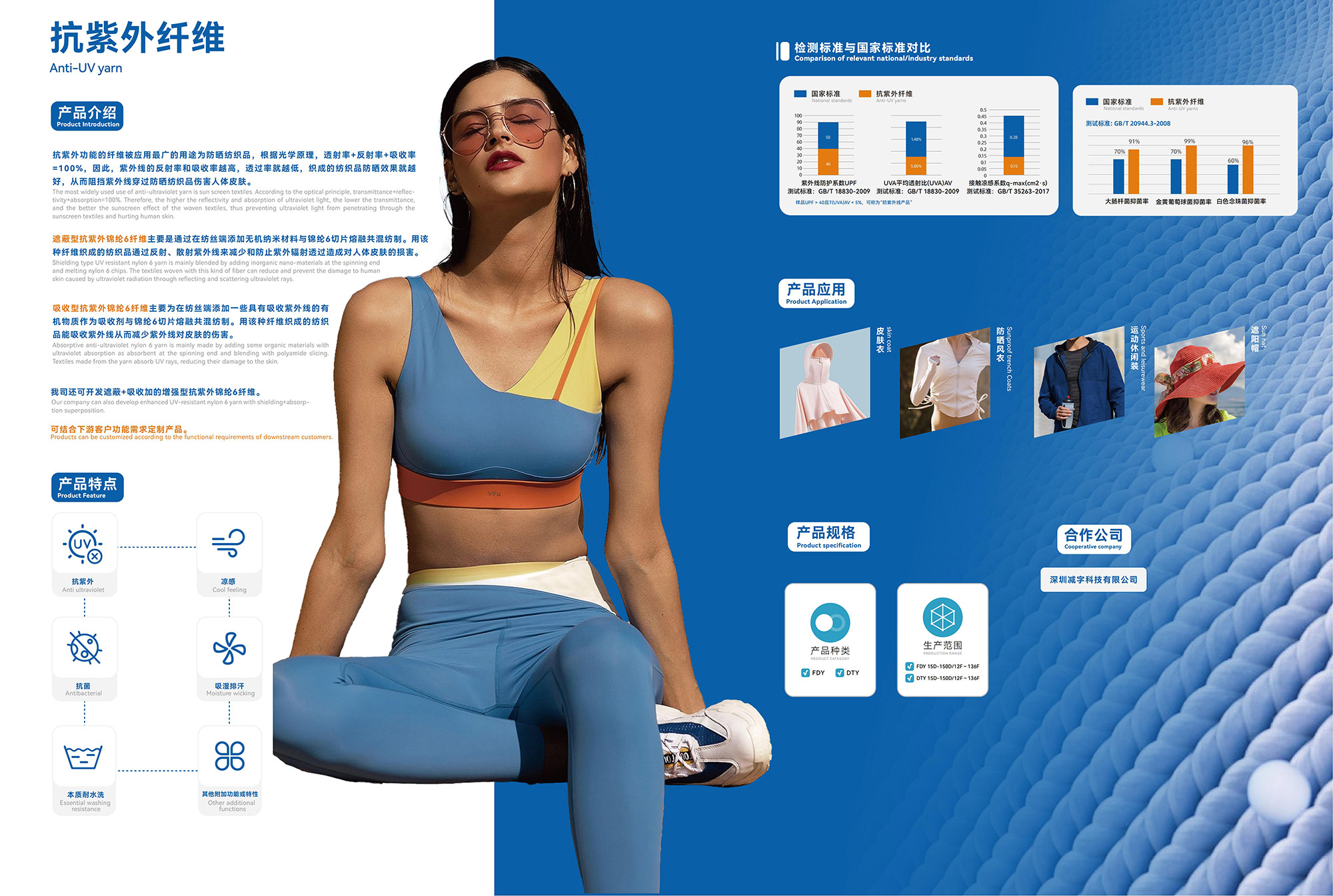 抗紫外功能的纤维被应用最广的用途为防晒纺织品,根据光学原理,透射率+反射率+吸收率 =100%,因此,紫外线的反射率和吸收率越高,透过率就越低,织成的纺织品防晒效果就越 好,从而阻挡紫外线穿过防晒纺织品伤害人体皮肤。