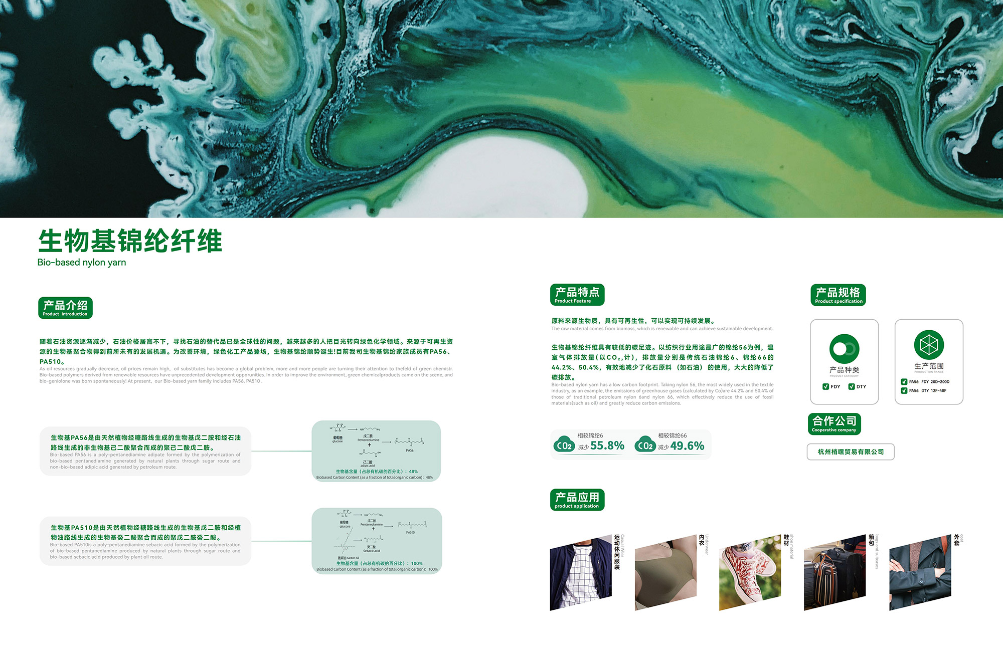 随着石油资源逐渐减少,石油价格居高不下,寻找石油的替代品已是全球性的问题,越来越多的人把目光转向绿色化学领域。来源于可再生资 源的生物基聚合物得到前所未有的发展机遇。为改善环境,绿色化工产品登场,生物基锦纶顺势诞生!目前我司生物基锦纶家族成员有PA56、 PA510。